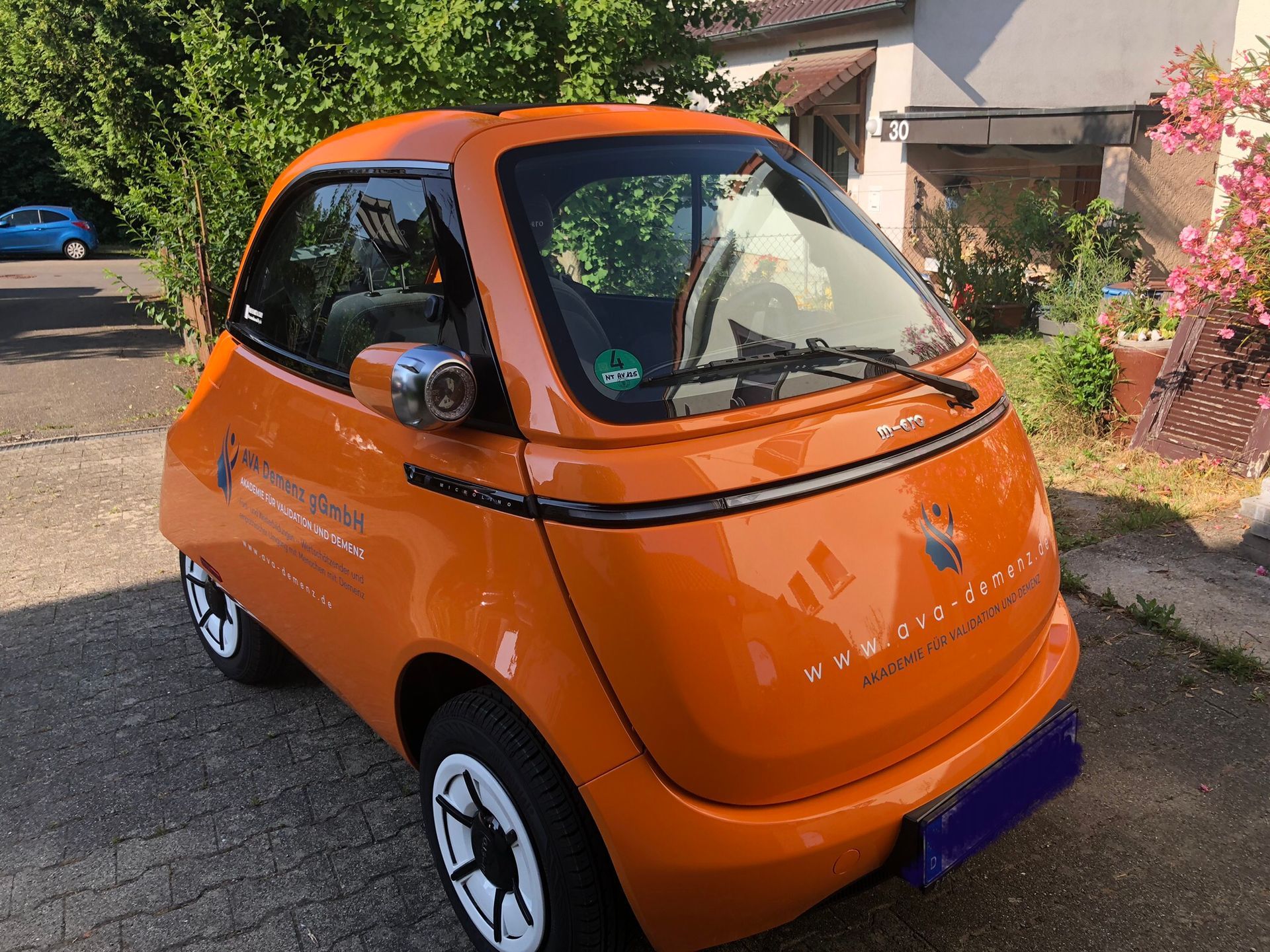 Dieses kleine Elektroauto ist der neue Firmenflitzer der AVA Demenz gGmbH. Wir freuen uns sehr auf die vielen kleinen und großen Gespräche am Straßenrand und hoffen, dass wir so nicht mehr zu übersehen sind.
